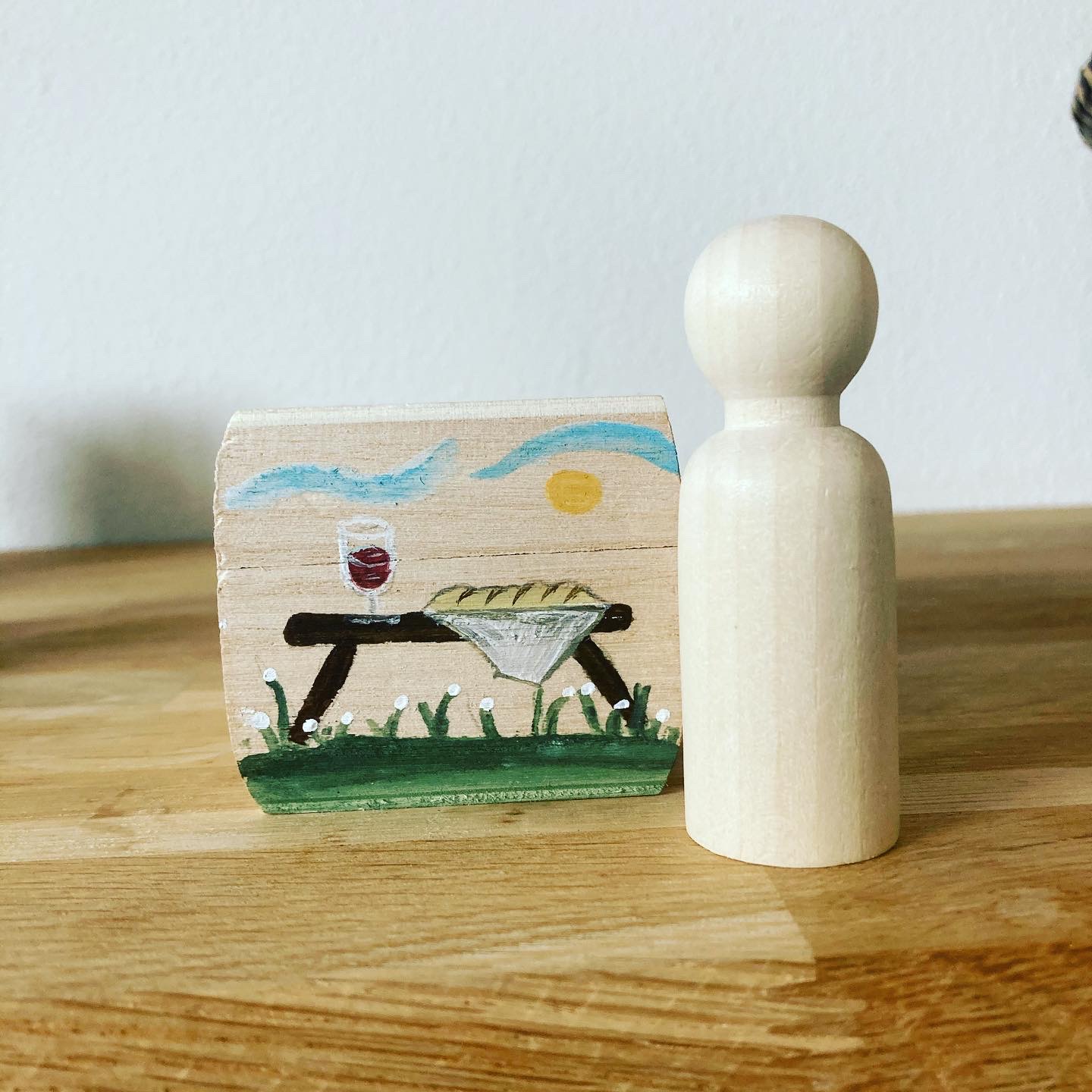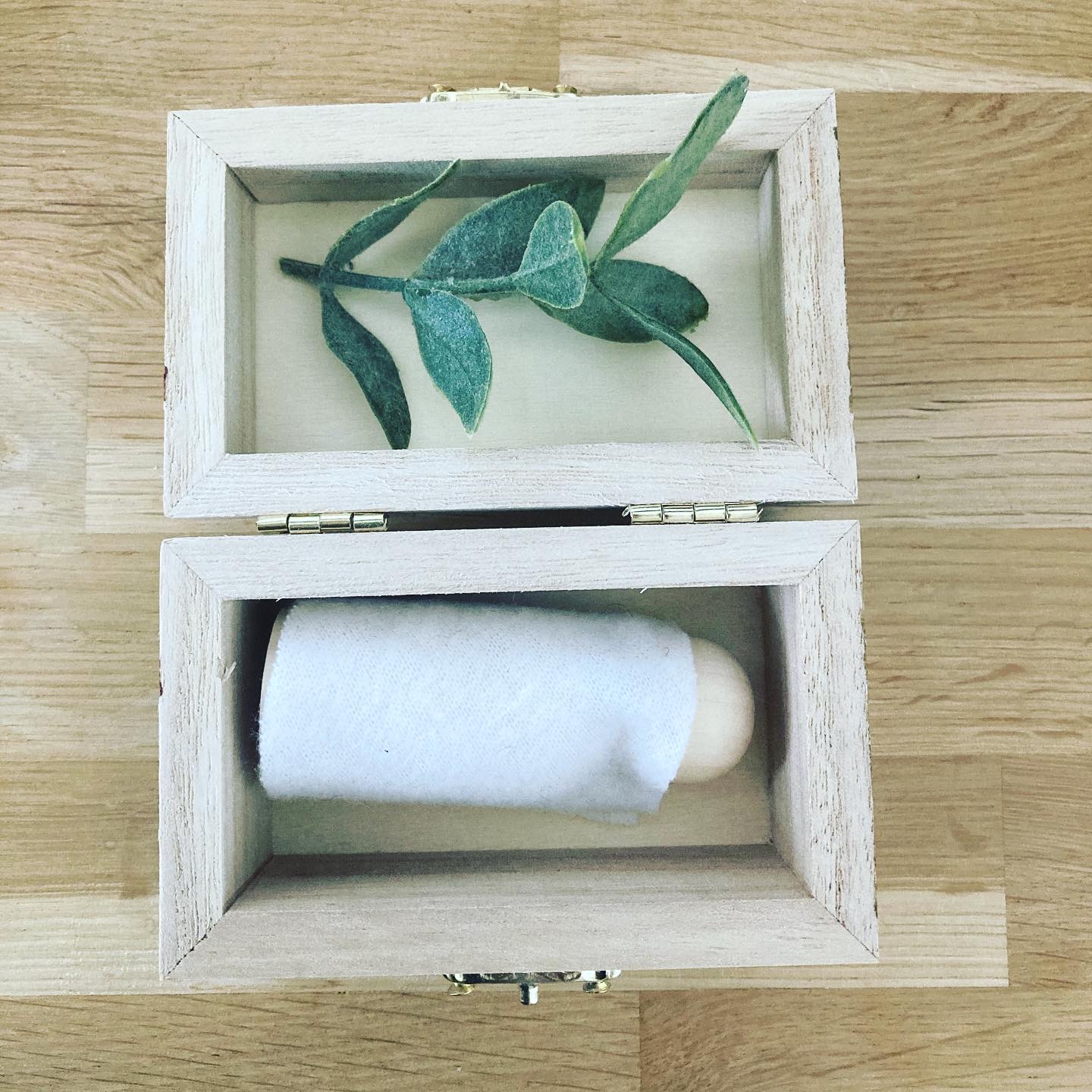 Het doosje bevat een houten popje, takje en wit doekje en is 9,5 x 6 cm.
